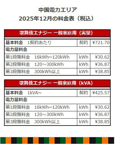 2025年12月の料金表